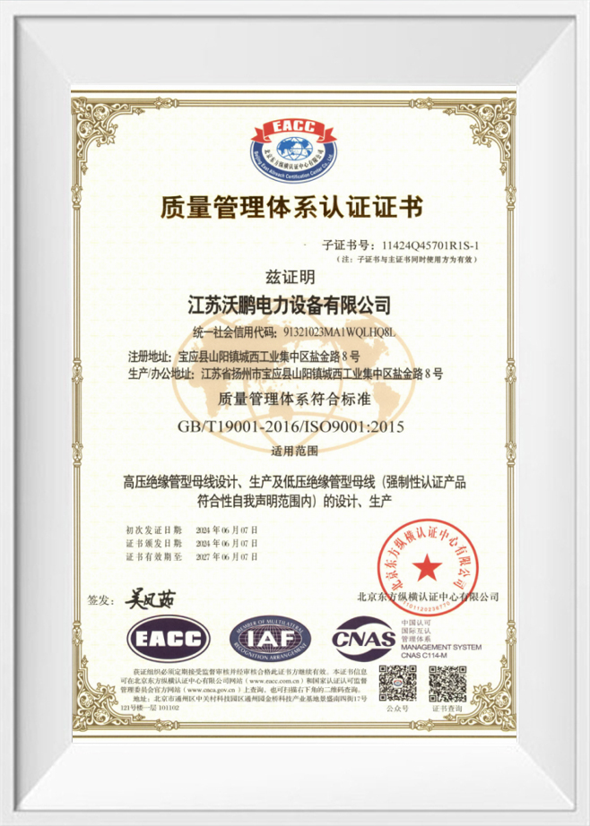 江苏沃鹏电力设备有限公司 AAA级信用企业